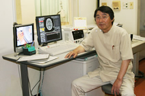 この検査では、患者さんが寝台に横になるだけで、苦痛なく頭部や胸部、腹部の断層像(輪切り)を鮮明に撮ることができます。 ↑コントローラーです。